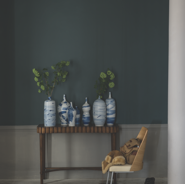 Ce bleu gris ancien change de teinte entre le gris, le bleu et le vert selon la lumière, offrant une alternative élégante au gris anthracite et s’adaptant aussi bien à des intérieurs modernes que plus traditionnels.