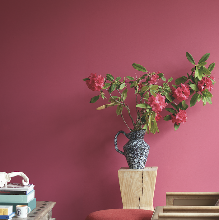 Cette couleur audacieuse, qui peut sembler rouge ou rose selon les perceptions, infuse toujours une atmosphère joyeuse et vivante. Idéale pour les petits espaces, elle apporte dynamisme et énergie lorsqu’elle est appliquée sur les murs, les boiserie ou les plafonds.