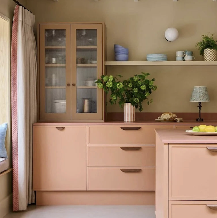 Ce terracotta en demi-teinte est une couleur indéfinissable, oscillant entre le rose, l’orange et le pêche selon la lumière.