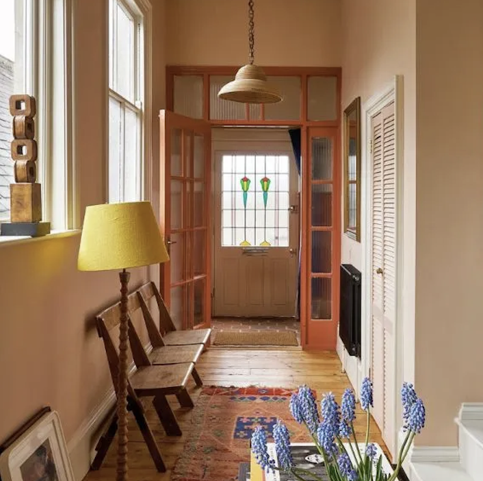 Cette couleur est difficile à définir : certains la voient comme un rose, d’autres comme un jaune. Ce qui est certain, c’est qu’elle apporte une chaleur indéniable à tout espace.