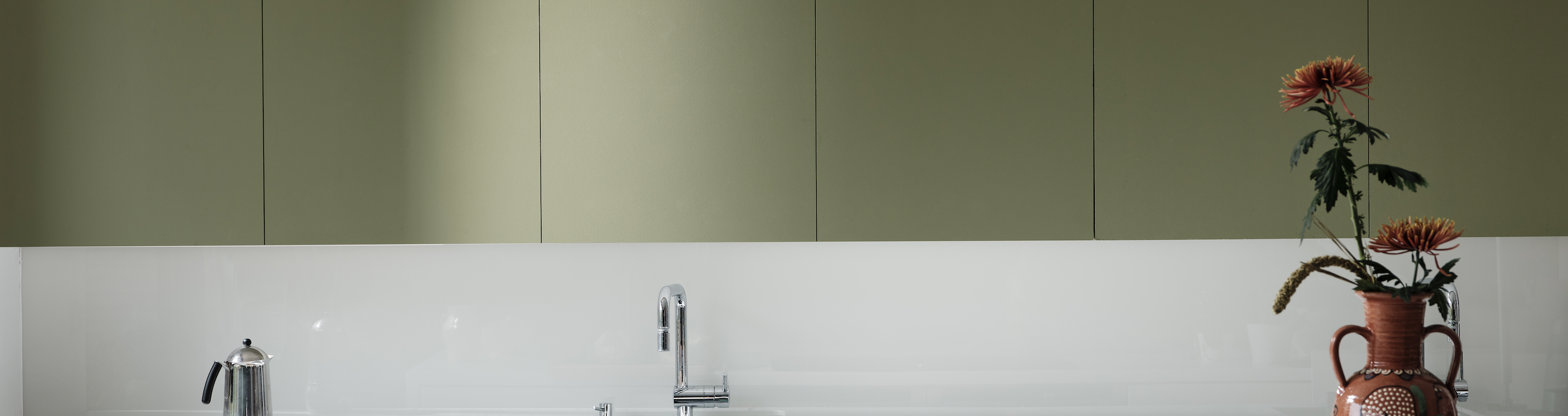 Olive est un vert très terreux et se révèle particulièrement riche dans les espaces sombres, où il s’associe parfaitement avec des neutres traditionnels.