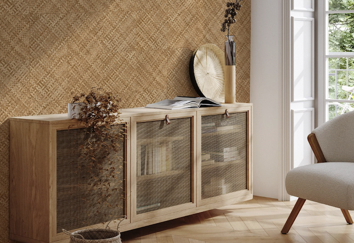 Tissu mural, paille japonaise et revêtements vinyles, parfaits pour les pièces humides ou à fort passage. Une solution durable et haut de gamme.